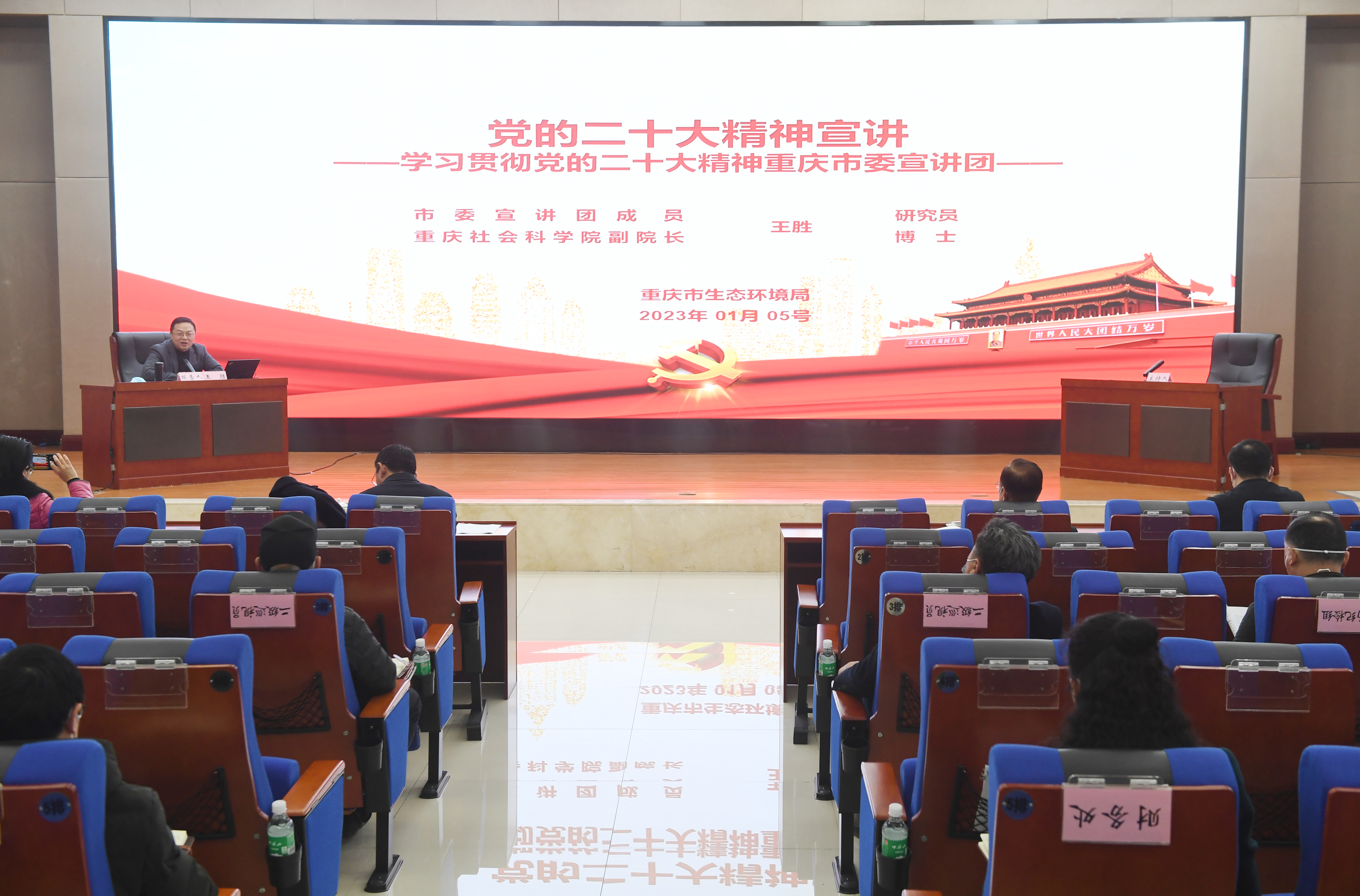 为深入学习宣传贯彻党的二十大精神,按照市委统一安排,1月5日,市生态环境局举行学习宣传贯彻党的二十大精神宣讲会。会议邀请市委宣讲团成员,重庆社会科学院党组成员、副院长王胜作宣讲报告。市生态环境局局长余国东出席会议。市生态环境局党组成员、副局长王邦平主持会议。