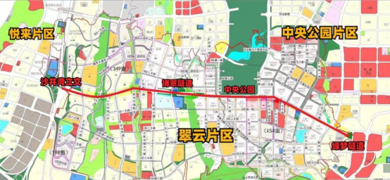 博翠大道长4.12公里,设双向八车道,车速60公里/小时,西起已建成的沙井湾立交与金山大道连接道,止于绿梦隧道,是连接中心城区、悦来片区至中央公园重要骨干通道。